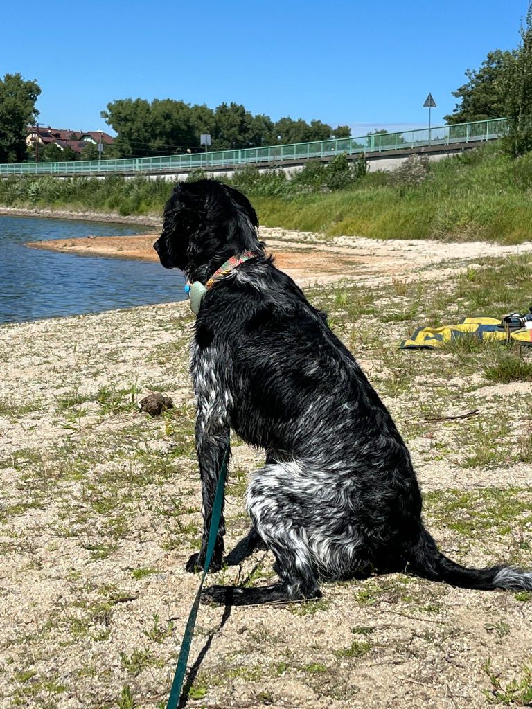 Heute ist er ein temperamentvoller Junghund, der die Welt mit unerschütterlichem Optimismus erobert. Er liebt das Wasser über alles – ob Teich, Eimer oder Rasensprenger, alles wird begeistert angenommen.